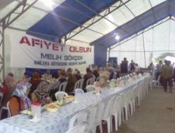 Caminin avlusunda 4 ayrı noktaya kurulan tezgahlarda yemeklerini tabldotlarda alan vatandaşlardan, yer bulanlar çadırda veya dışarıdaki masalarda, yer bulamayanlar ise çevredeki bankların veya kaldırımların üstünde, yemeklerini yedi.