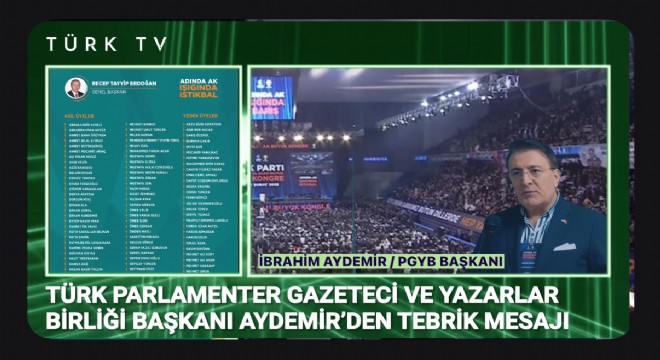 Türk Parlamenter Gazeteciler ve Yazarlar Birliği Başkanı İbrahim Aydemir, AK Parti’nin 8. Olağan Büyük Kongresi sonrası Cumhurbaşkanı Recep Tayyip Erdoğan ve partinin yeni yönetimini kutladı.